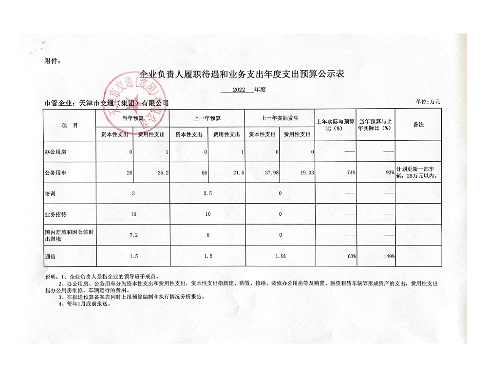 企业负责人履职待遇和业务支出年度支出预算公示表