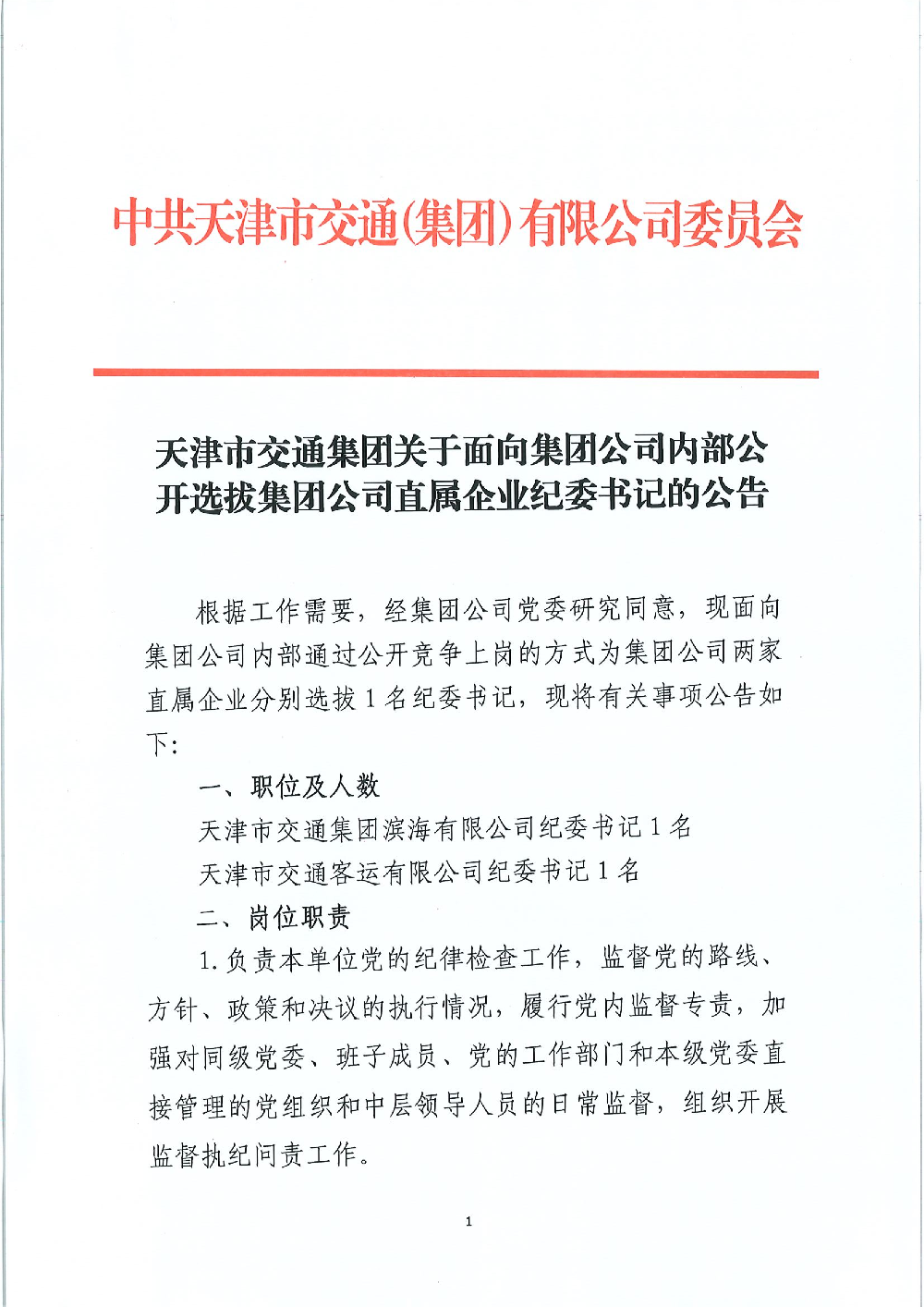 天津市成人网 关于面向集团公司内部公开选拔集团公司直属企业纪委书记的公告