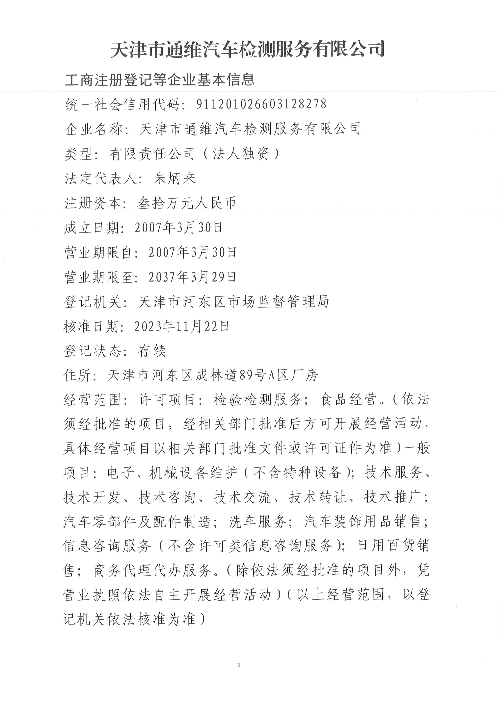 天津市通维汽车检测服务有限公司